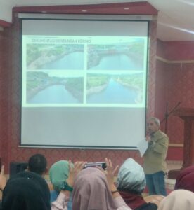 Foto : Management PT Kerinci Merangin Hidro Aslori Ilham Sedang Memaparkan Penyebab Surut ya Air Danau Kerinci